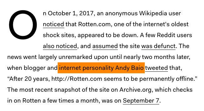 hi it's me, internet personality andy baio https://theoutline.com/post/2549/rotten-com-is-offline …pic.twitter.com/BeEi54eY77