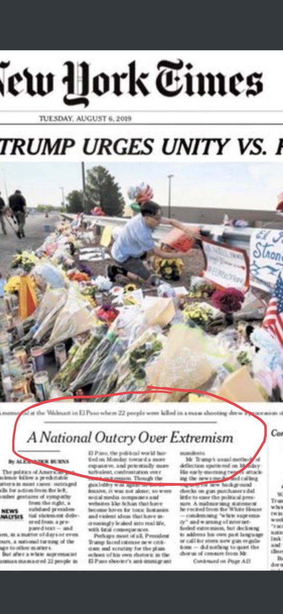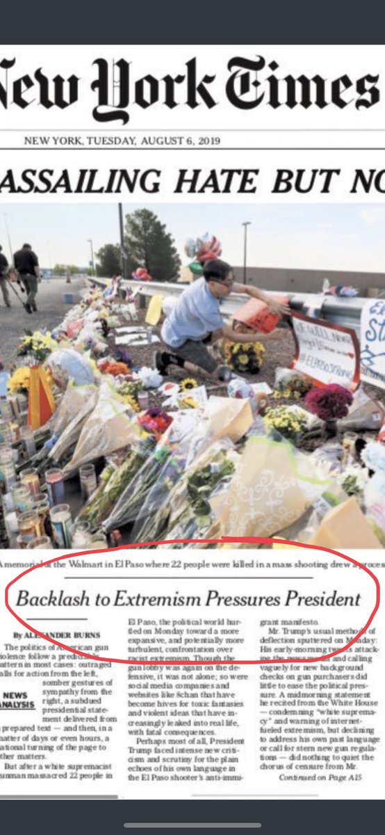The NYT also changed this sub headline from “An National Outcry Over Extremism” to “Backlash to Extremism Pressures President” ... unreal.pic.twitter.com/035Q8QhC4k
