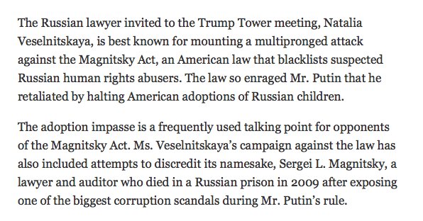 "A quick internet search would have revealed Ms. Veselnitskaya as a formidable operator with a history of pushing the Kremlin’s agenda."https://twitter.com/kylegriffin1/status/883796791048769539 …