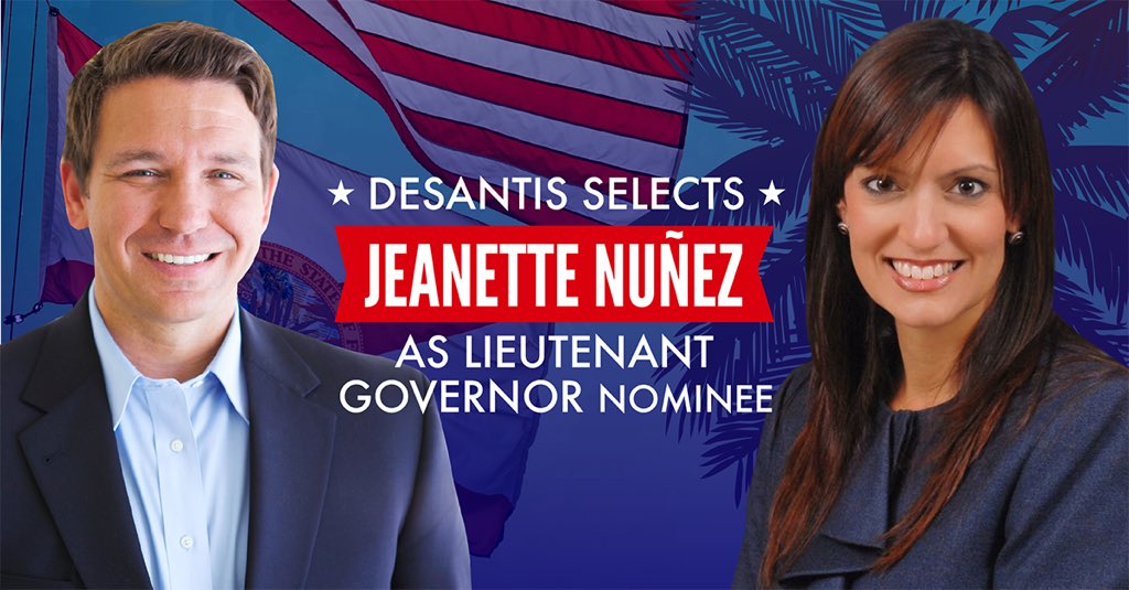 @RonDeSantisFL as his Lieutenant Governor candidate. I look forward to sharing our vision for Florida and showing why we are the only choice for hardworking Floridians.pic.twitter.com/Eeiq2mfQux