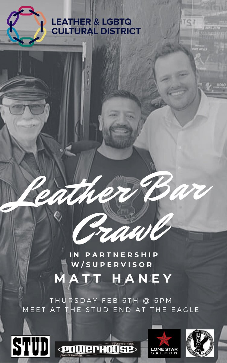 This Thursday- come crawl the bars with Matt Haney, Honey Mahogany, and the LEATHER & LGBTQ Cultural District! https://www.facebook.com/events/188648732199533/ …