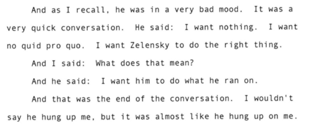 In light of Taylor's testimony that Sondland discussed an investigation into Biden in July, worth remember this from Sondland's testimony under oath.pic.twitter.com/mTxlL1I4Gn