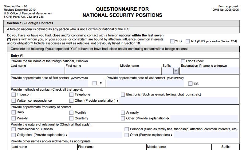 A couple of the questions potential Trump advisers will have to answer during their background checks. h/t