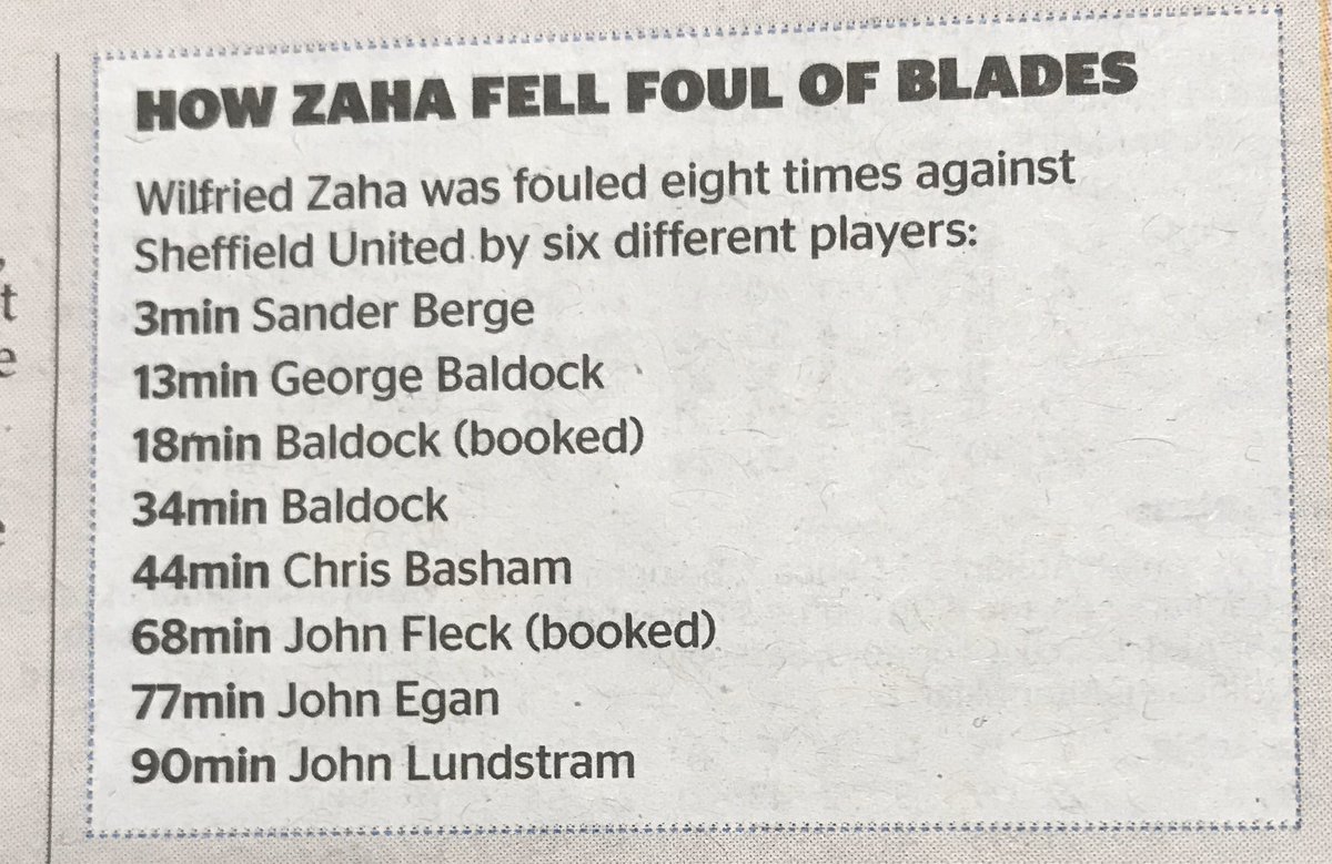 And I'm sure this is the first time ever that a player has been fouled 8 times in a game. If Palace had more of a plan than passing it to Zaha and leaving him to create something, he might not get brought down as much. Good piece? Think it's quite ridiculous, personally.