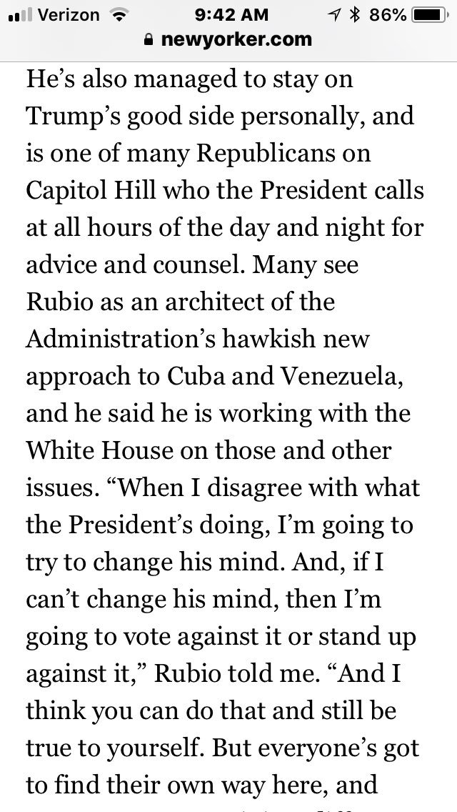 Excellent Article! @marcorubio stays True to his Principles while trying to influence Trump to make good decisions (not an easy task) Bravo Marco!