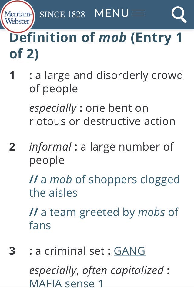 Ok, then the question becomes what definition are you using? 1 or 2? I don’t think they were a mob in the sense of trying to cause riotous or distructive action, but could agree with the informal definition.pic.twitter.com/6RDm1cUGzs