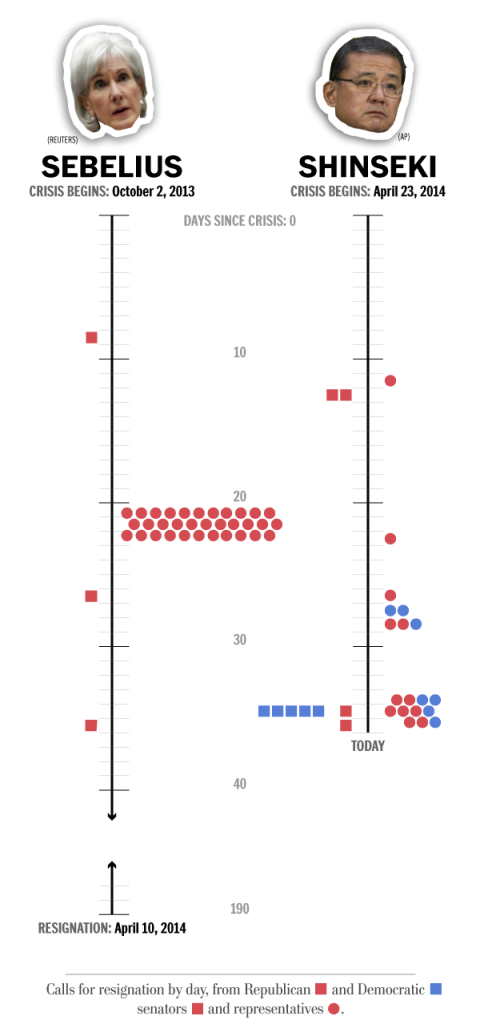 Eric Shinseki is in way worse shape than Kathleen Sebelius. Just look at this chart. http://wapo.st/1mw6MXI pic.twitter.com/hM9oSgWEs6