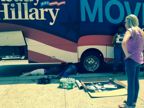 RT @bennyjohnson: Ready for Hillary bus breaks down. For updates: @bterris pic.twitter.com/jF3Q8b9vE2