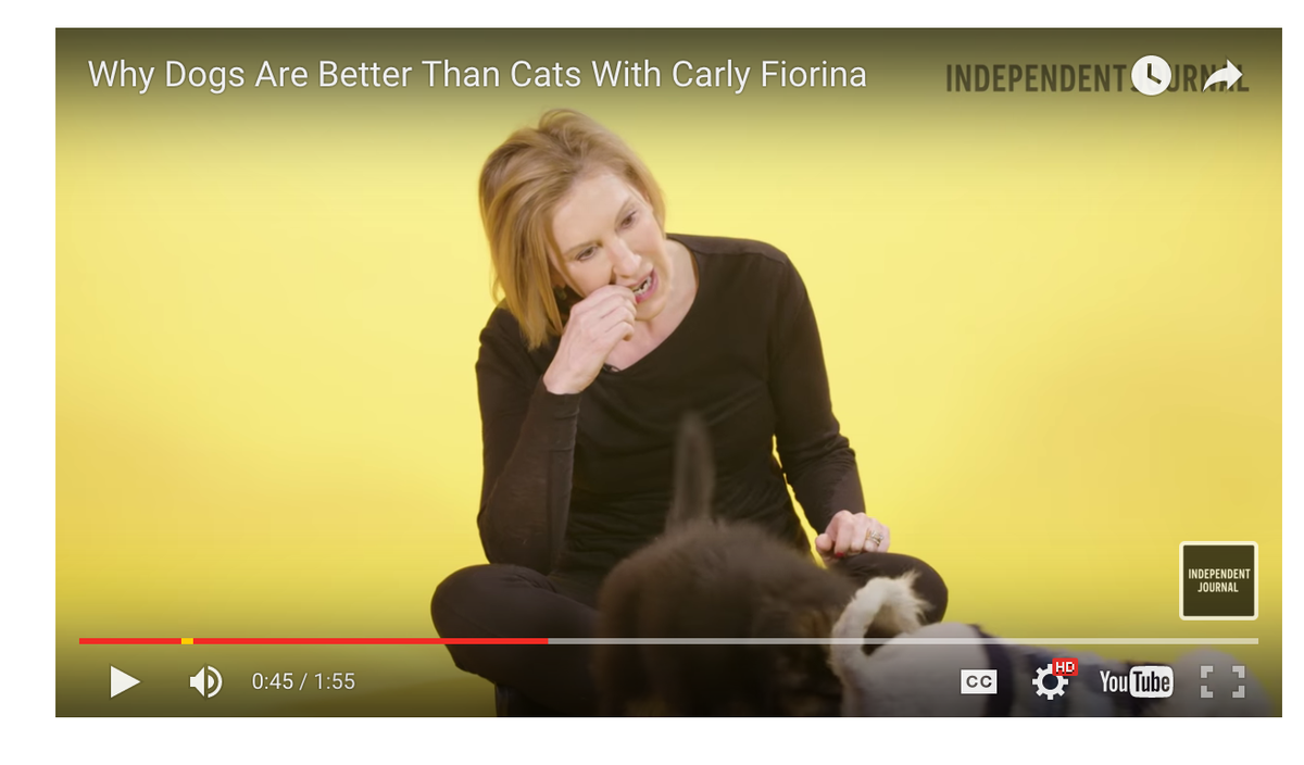 This is the moment in the insane Carly Fiorina video in which, as @heatherwilhelm points out, she eats a Milk Bone. pic.twitter.com/F3hwzVpxD9