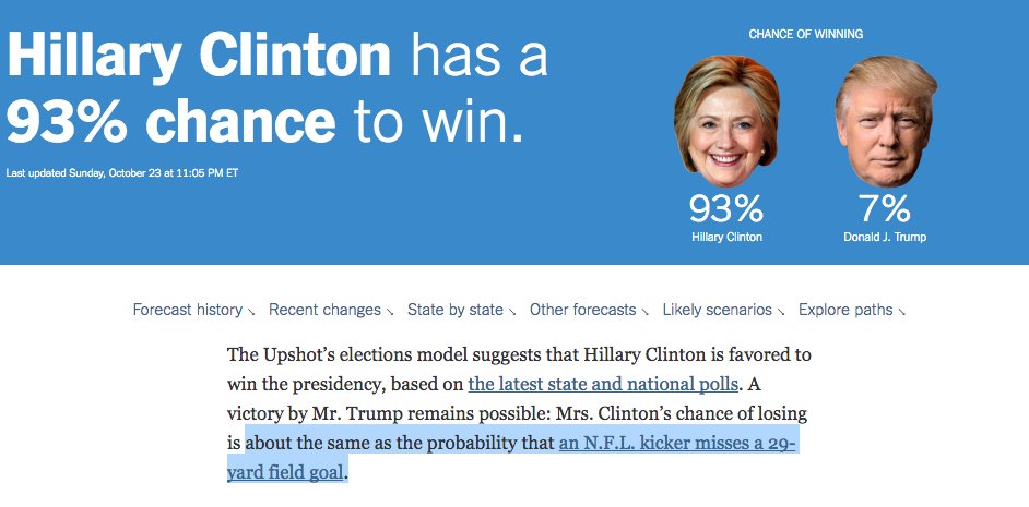 Frankly, if I were a Democrat being told Hillary still has a 7% chance of screwing this up, I'd be terrified.https://twitter.com/Nate_Cohn/status/790406031339823104 …