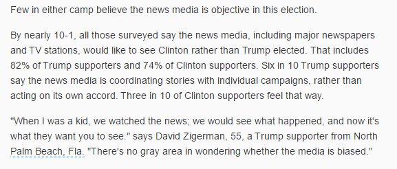 the media shares a huge amount of blame for their current predicament. snark, falsehoods, and outrage aren't reporting.