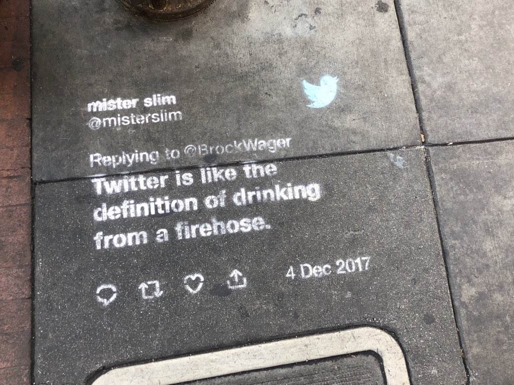 Anyone else see all the tweets-painted-on-sidewalks? I found some in the TL and in front of HQ.pic.twitter.com/Y4QRhTSjBx