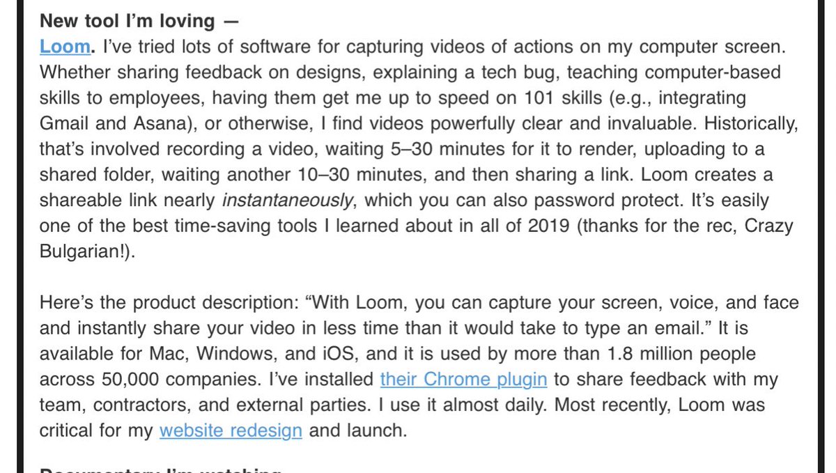 @useloom to give feedback for his new website. If Incould bybLoom stock I would. It’s the only software I’ve seen in years having the same viral effect as Dropbox and Slack.pic.twitter.com/nT9BBLsdU4