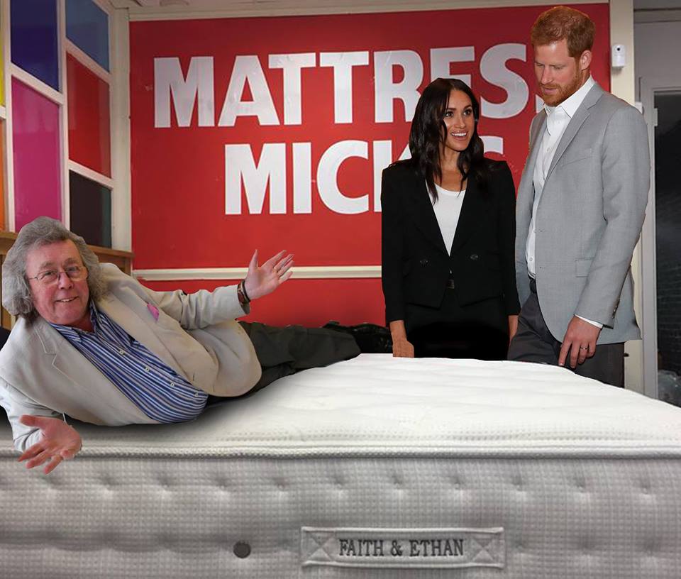 History has been made today at Mattress Mick's! When Harry and Meghan dropped into Mattress Mick's to take advantage of a good quality Irish made mattress. It all came about when they stumbled across Mick's video offering the Queen a Queen size mattress https://www.youtube.com/watch?v=26mRz9Kl6II …pic.twitter.com/IrgmeQEWqX