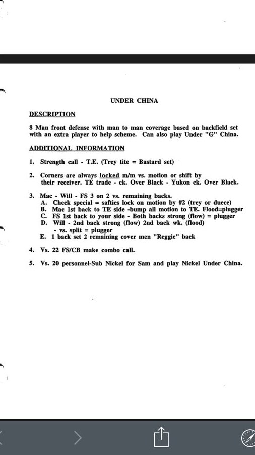 The Colorado State, 4-3. Tampa 2, Sonny Lubick 2003 Defensive Playbook shares a lot of similar verbiage with Pete Carroll's defense, reflecting the schematic, Monte Kiffin-influenced roots of Carroll. Green Front "Special" check for man coverage Over zone Y Ofc: Pirate-heavy.pic.twitter.com/Bh3X5OEFq7