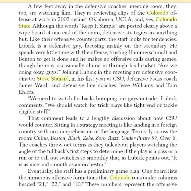This got me thinking about the schematic origins of the Sonny Lubick and Pete Carroll defenses, plus the listed Colorado 2003 DC - Steve Stanard. Lubick was defensive-focused at the time of 2003, see this excerpt from page 14 of "Every Week a Season" by Brian Curtis.pic.twitter.com/97bXM5CgJ8