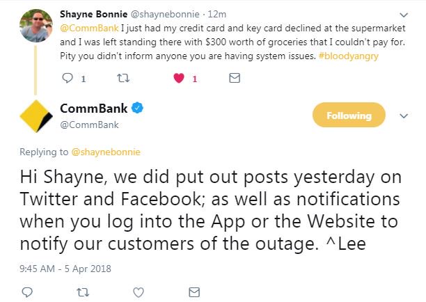 #CommBank's 25-hour outage that is appalling, it's the lack of communication with customers. Posting a message on Facebook is not the same as sending a direct warning before you're embarrassed at the cash register.pic.twitter.com/pMufs9JwfK