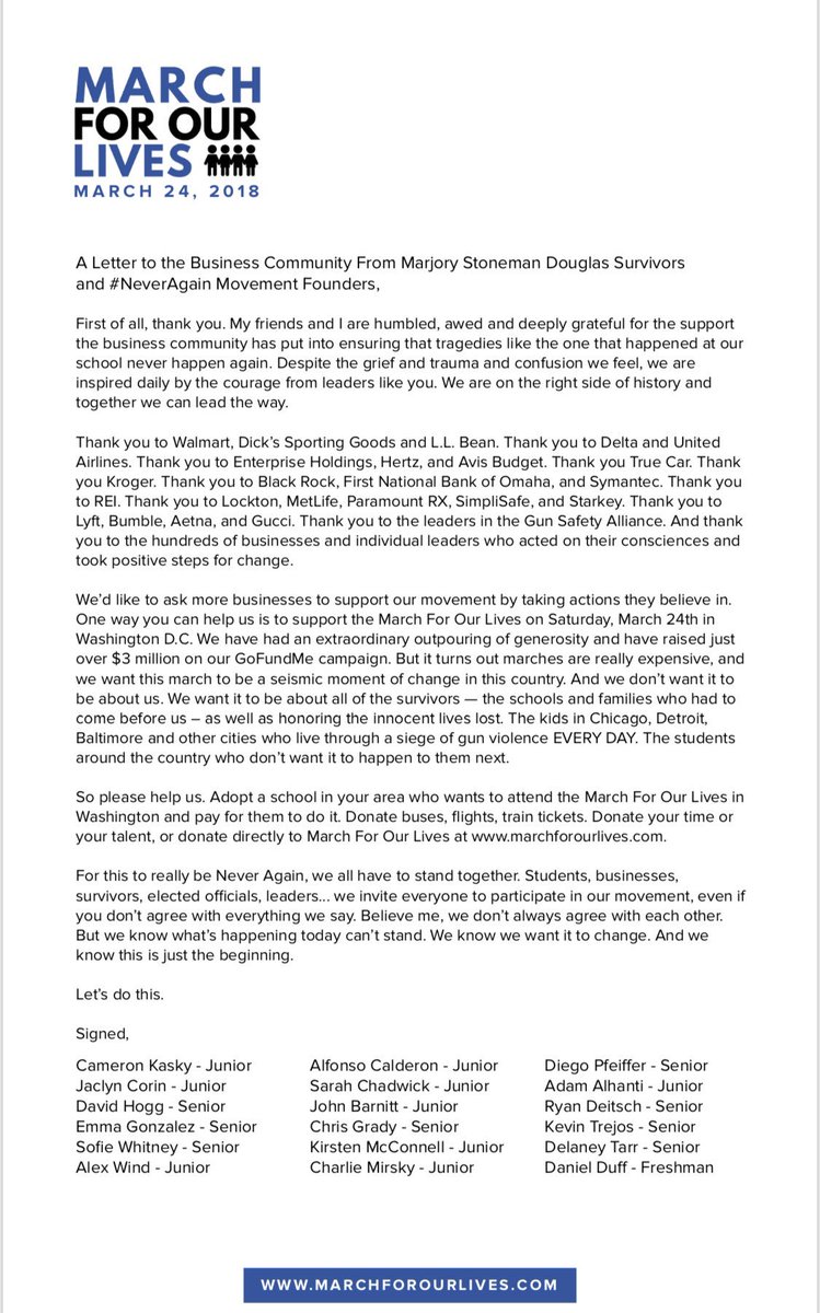 I hope everyone reads this letter and takes action. Adopt a school or donate. Make march 24 a day of significant action. My generation had to live with gun violence let’s change that for the nextpic.twitter.com/VDh1CN8l89