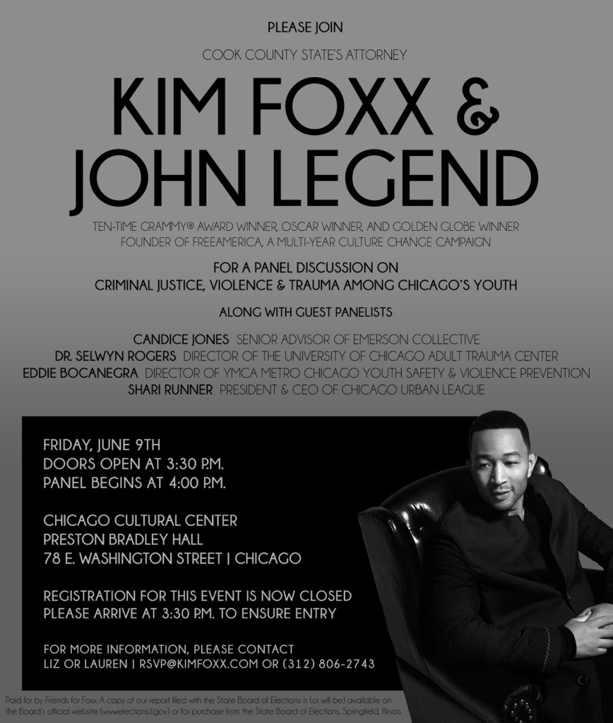 @JohnLegend was in#Chicago to discuss violence, trauma, and incarceration with Cook County State’s Attorney@SAKimFoxx.pic.twitter.com/GXbvvYcX8M