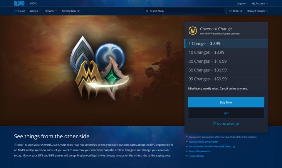 I would pay $400 to freely swap between Kyrian and Venthyr on my Warrior.