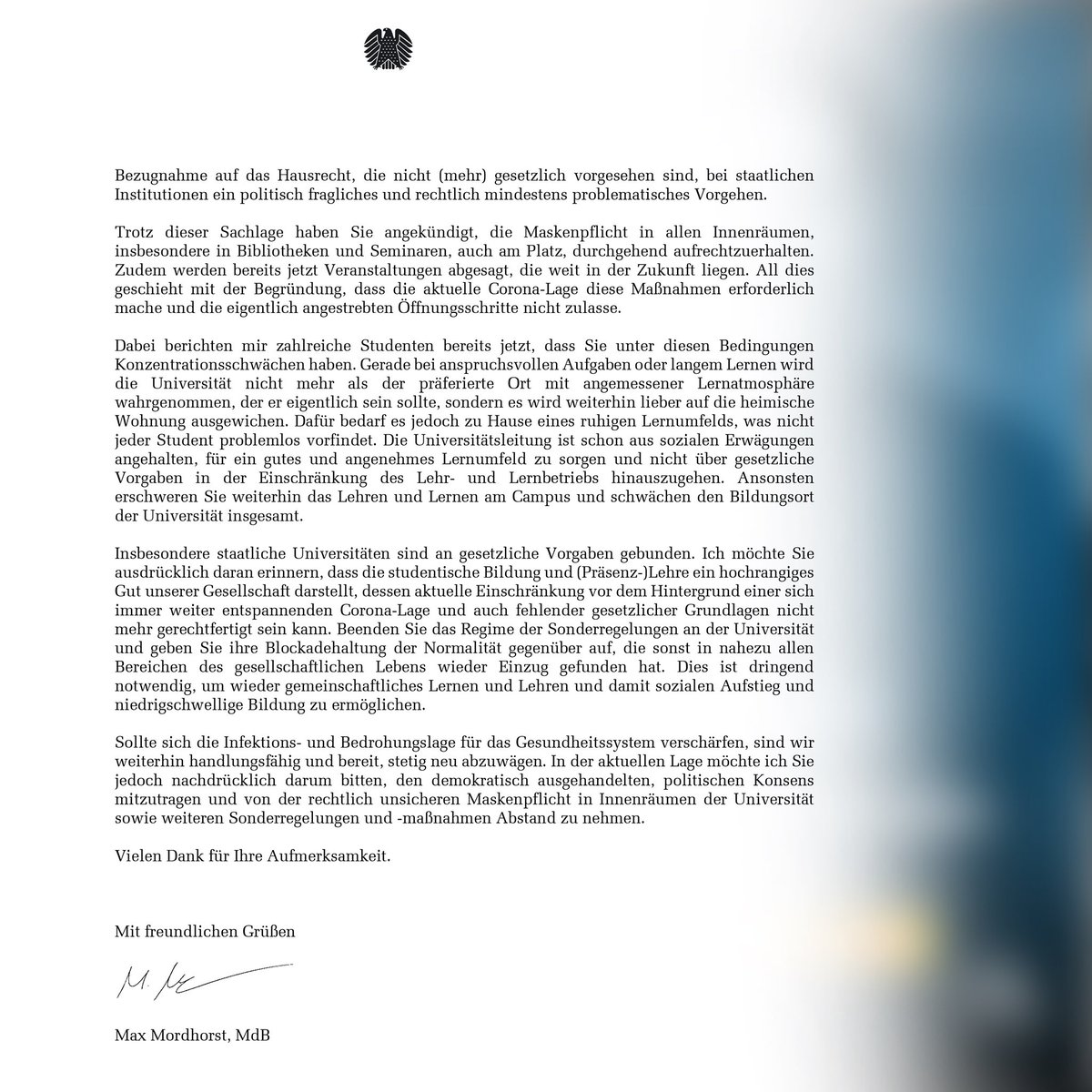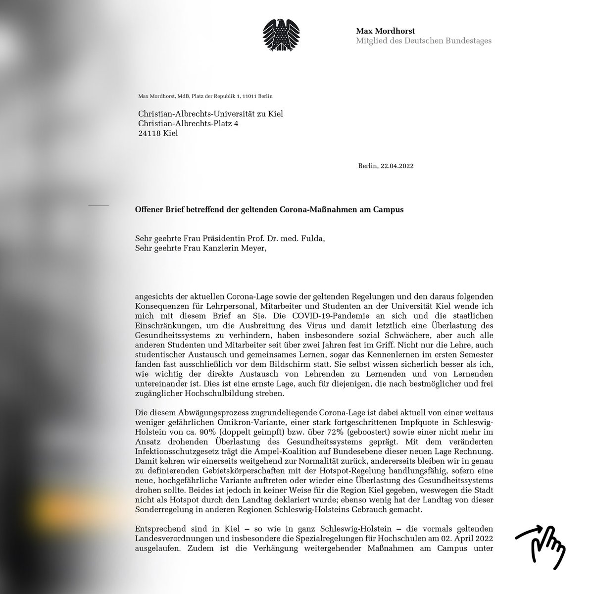 Die Uni Kiel hat eine Fakultätsfeier im Juni (!) wegen Corona abgesagt. Die Pandemie hat nicht nur gesundheitlich, sondern auch in der Mentalität einiges zerstört, das wieder zu erarbeiten lange dauern wird.