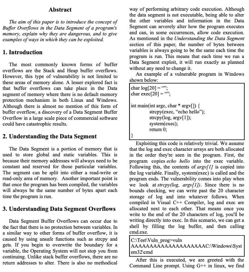 Also re-discovered my old paper from 2015 which was a primer on data segment buffer overflows. Unfortunately it got ignored when attempting to share it so it's only been seen by a few. Might tweak it and re-publish.pic.twitter.com/i55aFi2ciQ