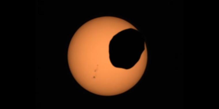using its Mastcam-Z imaging system, #NASA's#Mars rover@NASAPersevere has captured truly otherworldly footage of the spud-shaped#Mars moon#Phobos crossing the face of the Sun in a 40-second#eclipse. Watch here: https://go.nasa.gov/37zOvfy@NASAJPLpic.twitter.com/D9WlwpumDe
