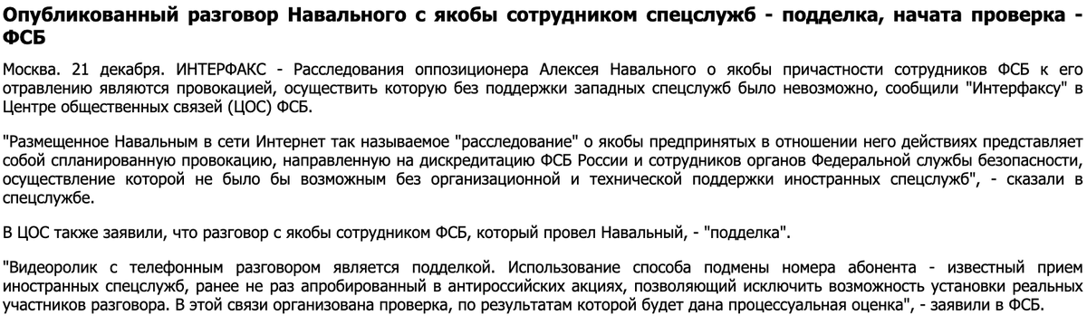 The FSB claims Navalny's prank call with one of his poisoners is fake. Shows you how much this rattles their nerves that they even repliedpic.twitter.com/UiLTMrLq8C