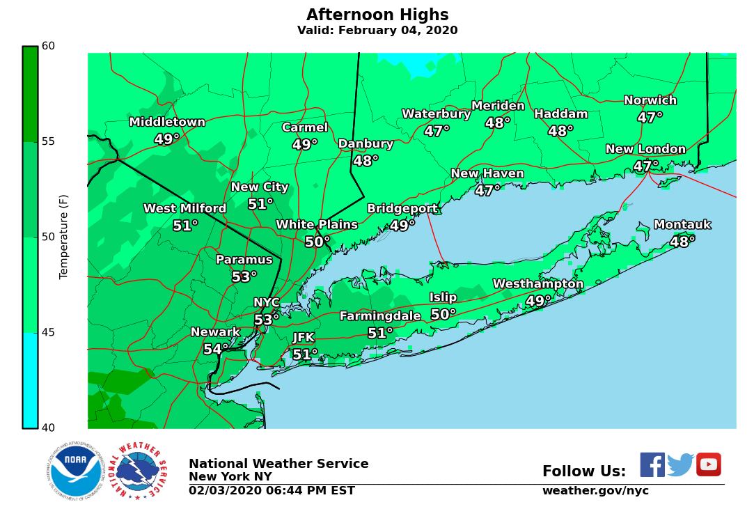 Here are tonight's lows and tomorrow's highs. Clouds will increase overnight with an approaching warm front, which will bring a chance of light rain throughout the day Tuesday and temperatures over 10 degrees above average.pic.twitter.com/CWwgaUkcZ6