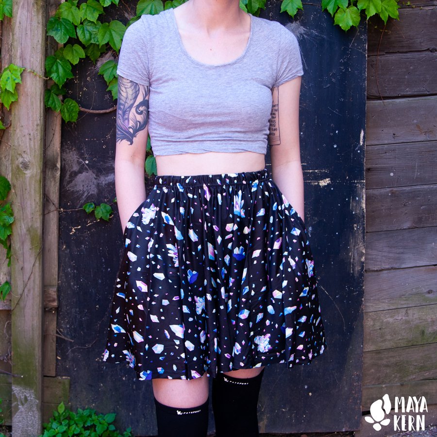 a bunch of my skirt designs have been restocked! including the bee, DM, witch, gemstone, snail, hands, succulent designs and more! my skirts fit sizes XS-4X and have pockets deep enough to fit a nintendo switch! http://store.mayakern.com