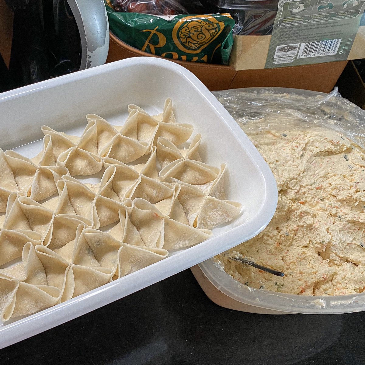 เชื่ออว่าเด็กไทยทุกคนที่เคยอยู่ในเมกาจะต้องรู้จะจักกับเจ้าสิ่งนี้ นางคือ Crab Rangoon เกี๊ยวทอดครีมชีสผสมปูอัด หากินได้ตามร้านอาหารไทย/จีนในเมกาแทบทุกร้าน แต่กลับแทบจะหากินในไทยไม่ได้เลย ไปเจออยู่ร้านนึงขาย 3 ตัว 70 บาท ไส้นิดเดียว วันนี้เลยมาทำกินเองซะเลย ชีสจุกๆปูเเน่นๆ