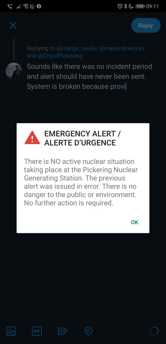 Sounds like there was no incident period and alert should have never been sent. System is broken because province can't handle to manage. Just had this come in now... How many hours later?pic.twitter.com/TETMdDY4G6
