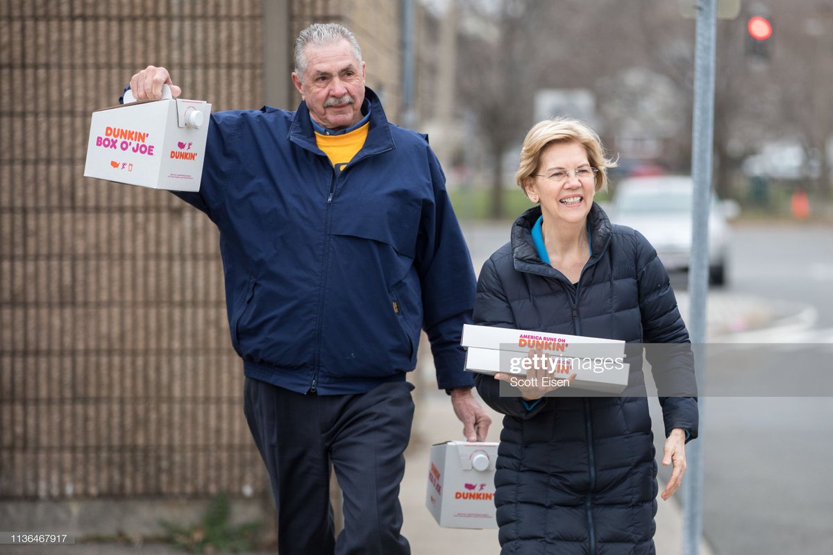 @ewarren) brings coffee and donuts to striking Stop & Shop workers in Somerville, Mass. as she joins the picket line