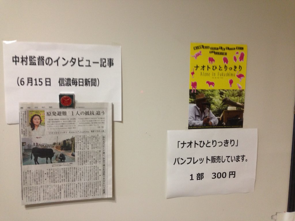 本日は長野市で「ナオトひとりっきり」の上映会でした。100名のお客さんにお越しいただき、上映後、活発な議論になりました。福島のことを我が身のように感じ、土地に根ざして生きている方々の目線で話していただいて素晴らしい上映会でしたpic.twitter.com/xipSJP8fsW