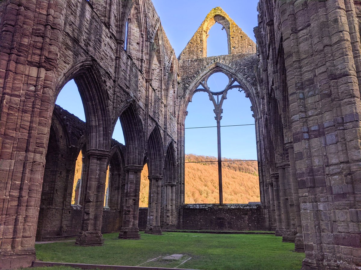 The beauty of these 2 sacred sites made my heart sing Mitchell’s Fold stone circle, ancient lichen covered stones set against the backdrop of nearby hills and distant Welsh mountains; Tintern Abbey, stained glass long gone, replaced by sunlit trees and sky