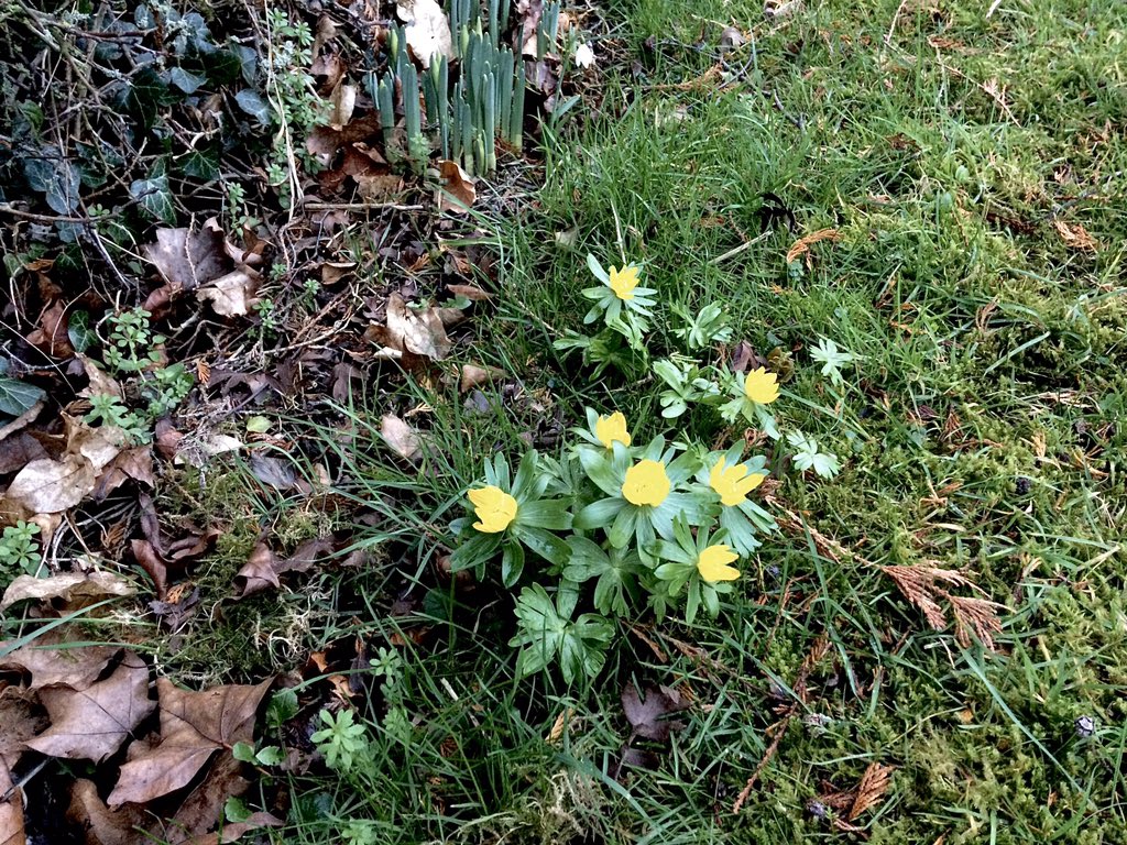 #SmallBeautiesHour - here is a tiny aconite flower with some daffodils emerging behind. I’ve got to go out for a couple of hours, catch you all later :)pic.twitter.com/5AL6irO8wj