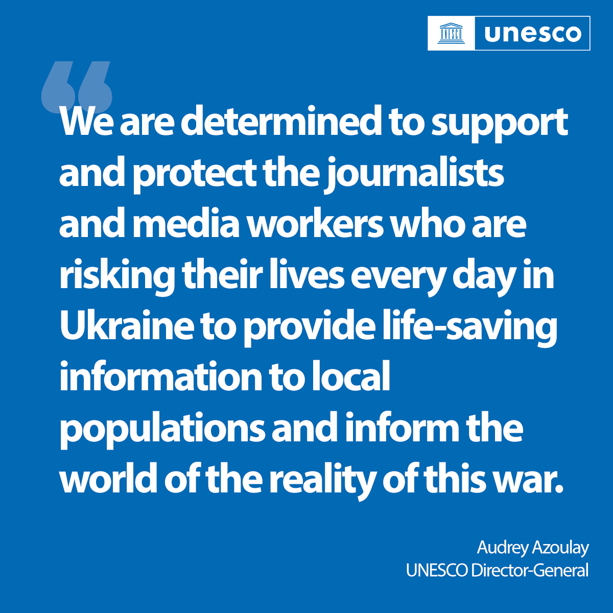 @UNESCO is implementing new emergency measures to protect#journalists in#Ukraine, providing training & sending protective equipment. We're also helping displaced journalist unions to continue their work & to support the free flow of information.