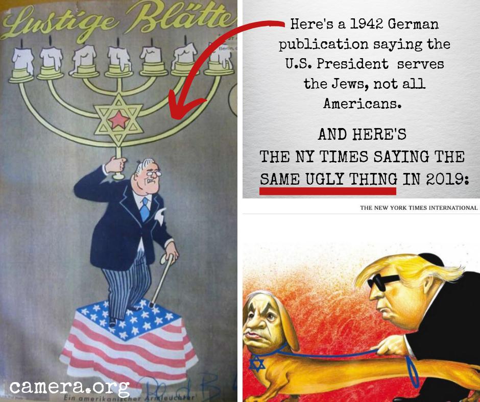 @nytimes cartoon displaying Jewish people as dogs. Militant Islamist texts refer to Jewish people as “the ancestors of pigs, monkeys and dogs.” Shamepic.twitter.com/V1DjfPMuxt