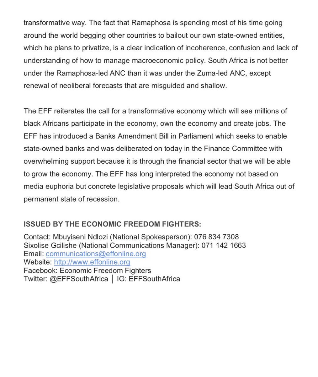 EFF are economic illiterates. Anyone who bothers to read on basic economics will see that these guys know nothing about the economy. They scare the ANC with their militancy that the ANC gets terrified of losing votes they just adopt their own populism. Scary stuff