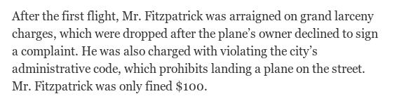 "Magistrate Edward J. Chapman, who set $5,000 bail 'as a deterrent to other foolish young men who get drunk and fly a plane.'"http://www.check-six.com/Crash_Sites/TommyFitz-Cessna140s-NYC.htm …