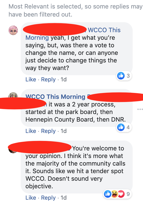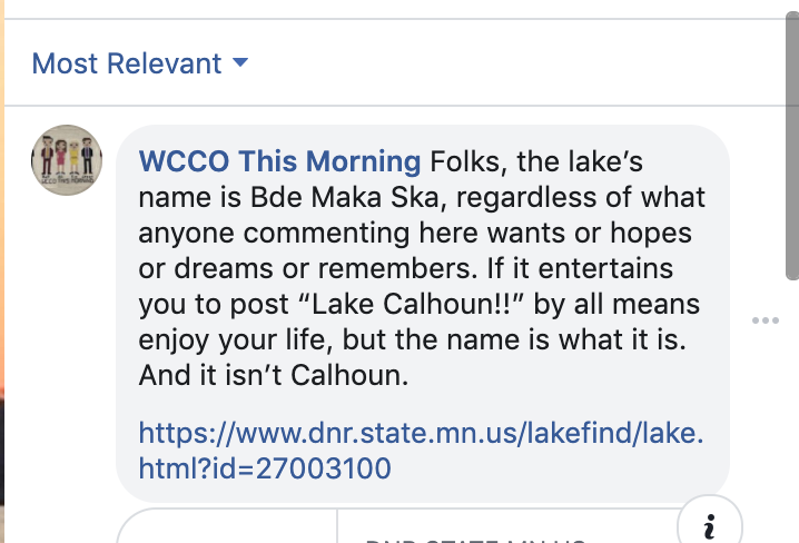 “Doesn’t sound very objective.” Wanting a news station to present “both sides” to the official name of a lake is exactly what I expect on Facebook these days.