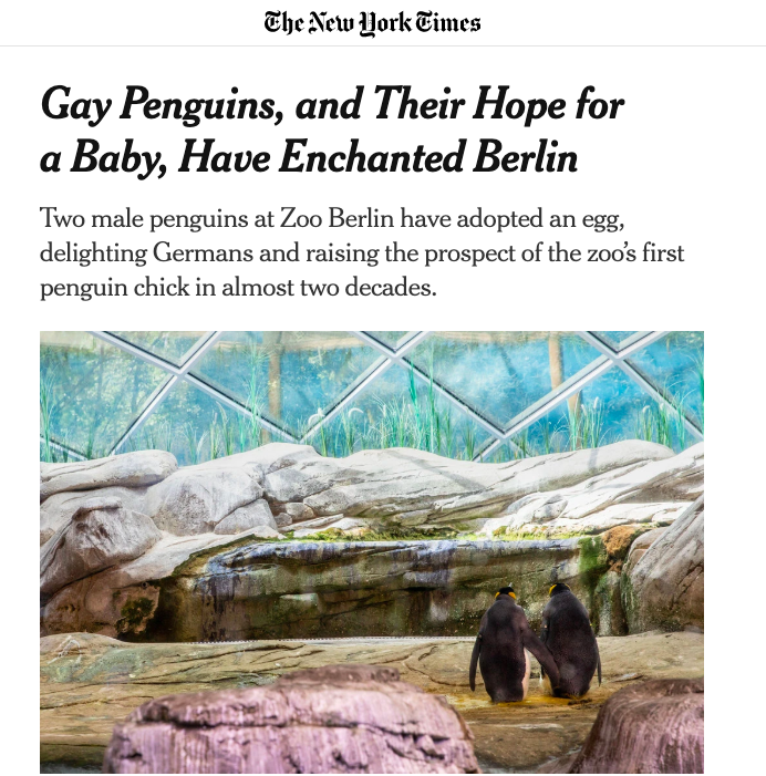 Do take a moment to treat yourself to today's entry in the canon, folks https://www.nytimes.com/2019/08/14/world/europe/male-penguins-adoption-egg-berlin-zoo.html …https://twitter.com/perlberg/status/1161609033771573249 …