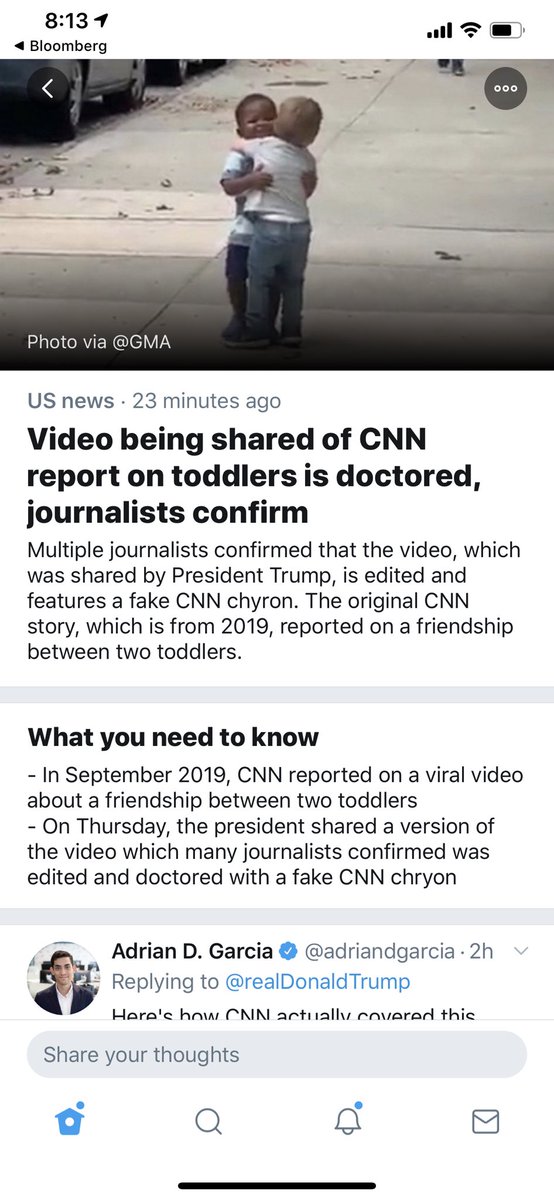 I gotta admit the fact that CNN actually ran a reported story “about a viral video about a friendship between two toddlers” in 2019 feels like one of the worst things about this storyhttps://twitter.com/sarahfrier/status/1273816272367575040 …