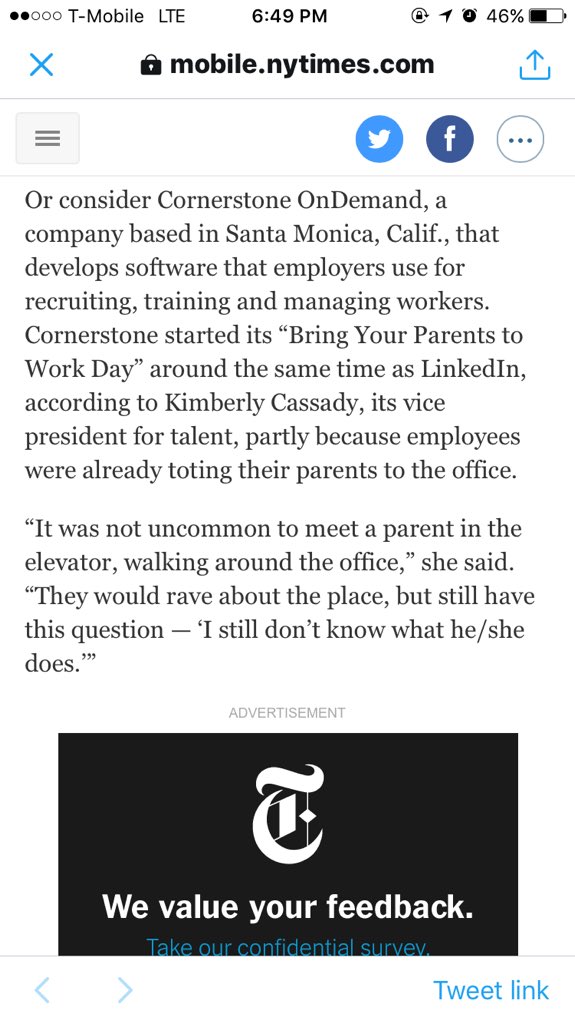 I'm going to play my millennial card. What's wrong with parents being the main career sounding board?! https://nyti.ms/2tPvzjg