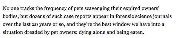Dying alone and being found weeks later vs dying alone and being eaten by my pet idk which is worse