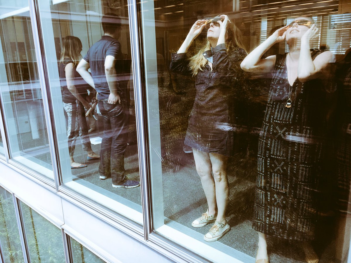Gasps and excitement as the NYT newsroom realizes you can see the eclipse from Metropic.twitter.com/dFaAn178cY