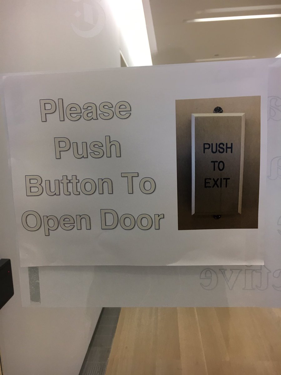 Except you have to push button and then pull door, which leaves me even more flummoxed