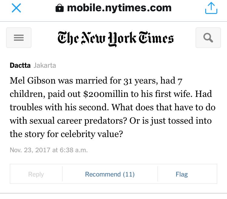 Especially intriguing is the commenter who says that since Mel Gibson paid his first wife $200 million, his "troubles" with the second are immaterialpic.twitter.com/JKz6xDb8Rk