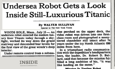 Sept. 7, a week after the Titanic discovery was announced, it's back on A1 with an interview with Ballard. (mild eyeroll at the 'oh look we have the first newspaper interview' line in graf <squints> five? at least it was after the jump.) https://timesmachine.nytimes.com/timesmachine/1985/09/07/issue.html …pic.twitter.com/KAXrvZEUGC