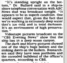 the following day, The Times ran an AP piece on Bob Ballard's interview with ABC News (a ship-to-shore call that ran on the evening news). CBS, apparently, got the first footage of the Titanic. https://timesmachine.nytimes.com/timesmachine/1985/09/04/237108.html?pageNumber=15 …pic.twitter.com/Pu7hn9K4lo
